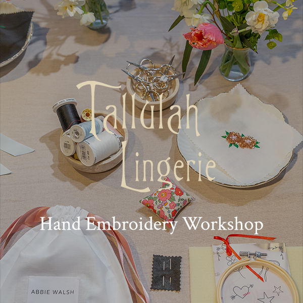 Join me for a Hand Embroidery Workshop on Saturday 22nd Nov 1pm – 4pm located at the sumptuous independent lingerie store Tallulah Lingerie in Islington, London.